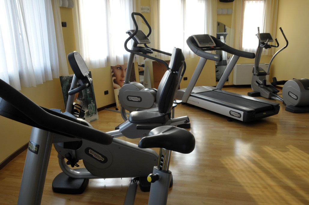 La nostra sala fitness è dotata di attrezzature di ultima generazione: tapis roulant, tre cyclettes, step, synchro machine, panca multifunzionale, panca classica e pesi liberi.