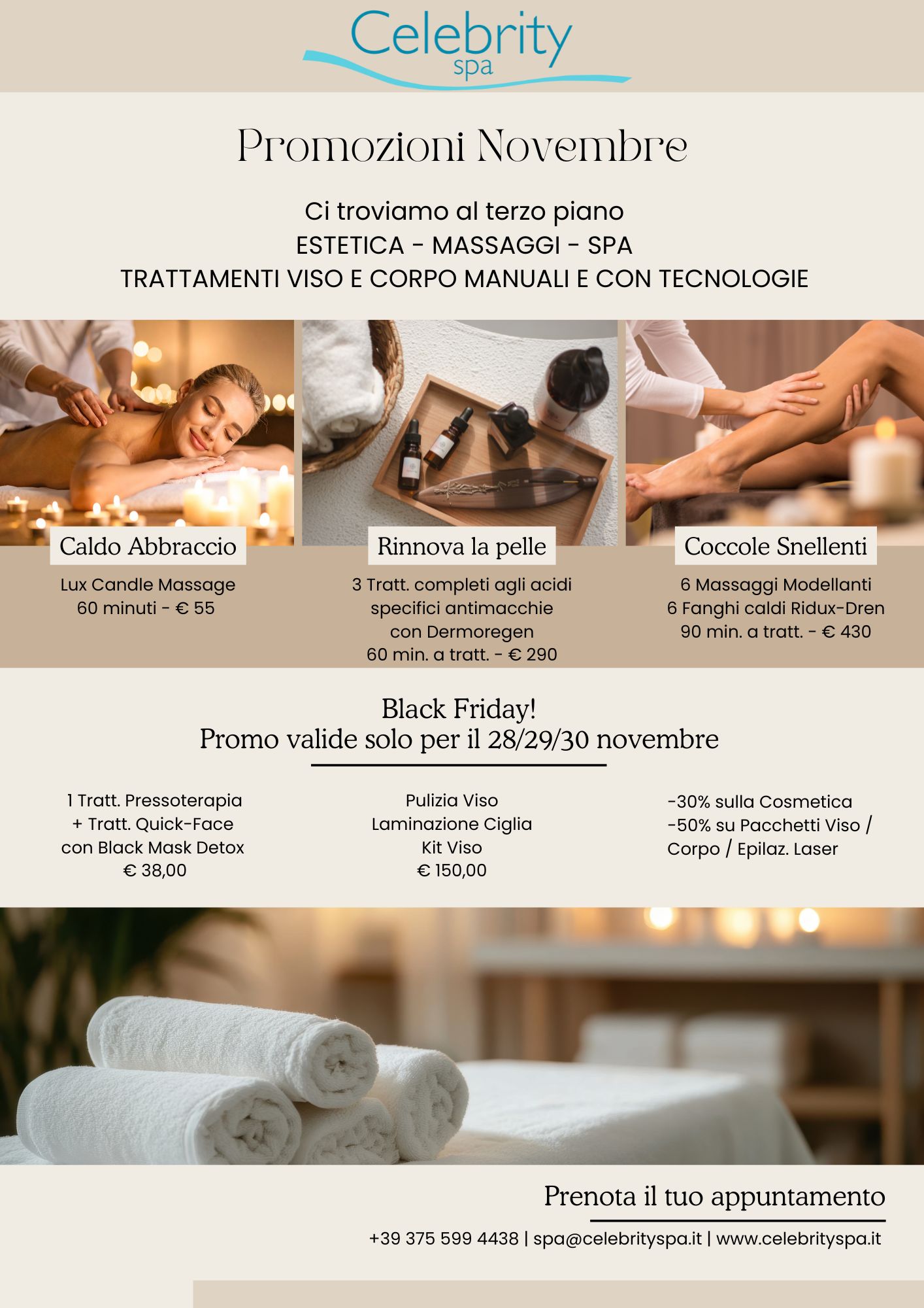 Ogni mese una proposta nuova, limitata e vantaggiosa: trattamenti speciali, rituali esclusivi o pacchetti benessere in promo.